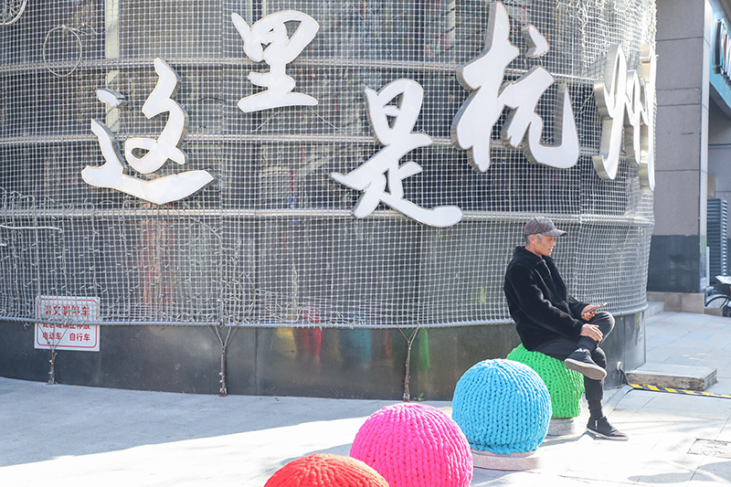 沿着吴山路至解放路路段漫步,这些城市“守护者”的新装扮各有巧思:吴山路口的石墩身着纯色毛衣,其中3个还特意设计成带绿叶子的橘子造型,清新灵动;解放路停车场旁的石墩则主打撞色风格,红、黄、蓝、绿等明亮色彩交织,点缀着毛球、花朵、星星等可爱装饰,远远望去宛如一串移动的彩虹。配套设置的3张长石凳也铺上了同款式粗毛线坐垫,让市民歇脚时告别“冻屁股”的困扰。