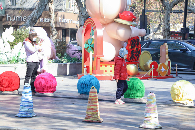 浙江在线1月9日讯(记者 陈天怀)“天冷了连石墩子都有新衣服穿,也太卡哇伊了吧!”近期,杭州湖滨解百周边的街头成了新晋网红打卡地,30余个石墩子与近20个雪糕筒集体换上手工编织的“多巴胺色毛衣”,用绚烂色彩与柔软质感点亮冬日街头,市民游客纷纷驻足拍照,更收获了外国友人的青睐。