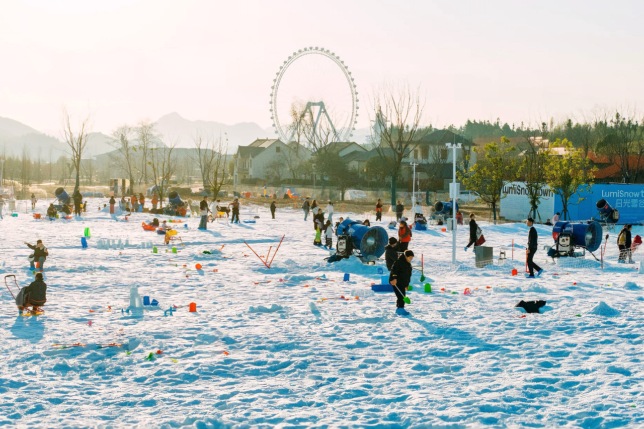 作为长三角首个以“北欧雪境”为主题的沉浸式嬉雪乐园,“日光雪谷”于去年年底试营业,首日便涌入近千名游客。“这里规划了雪地烘焙工坊、极光模拟剧场、驯鹿雪橇体验区,连热饮站都特意设计成雪洞造型。” 项目运营负责人陈帆指着园区地图介绍,“我们建造的不只是一个雪场,更是一个完整的雪境生活场景。”