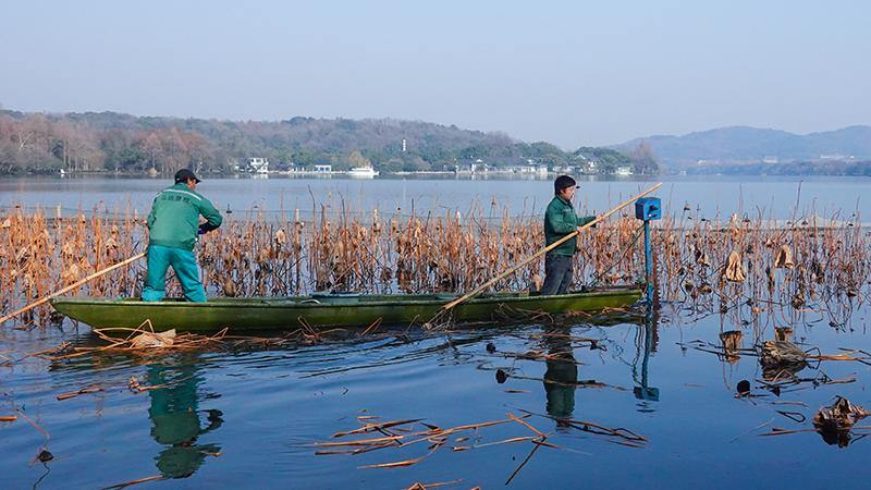 浙江在线1月23日讯(记者 陈天怀)1月23日,西湖一年一度的残荷收割工作正式启动,这场为新生蓄力的养护作业,也宣告着西湖残荷最后的观赏期已至。在西湖小陈庄黄舞妃荷区,养护人员划船在荷间穿梭,凋零的荷枝渐渐堆满船舱。