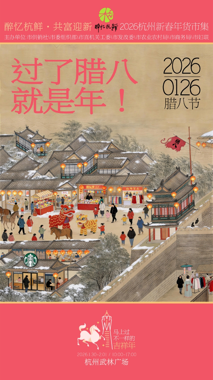 浙江在线1月27日讯(记者 陈卓妤 通讯员 陶永兵)杭州人的春节仪式感,从一场热气腾腾的年货市集开始。记者从杭州市供销社了解到,1月30日至2月1日,每天10时至17时,拱墅区武林广场将变身年味聚集地,“醉忆杭鲜·共富迎新”2026杭州新春年货市集重磅启幕,超过100个特色摊位集结,可以一站式解锁老底子腌腊香、非遗手作趣、共富助农味,更有新春消费券免费领。