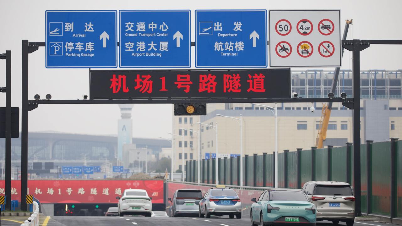 杭州萧山国际机场1号路隧道通车试运行 图源:杭州机场