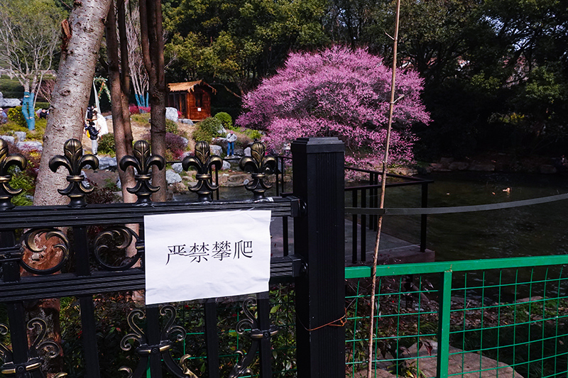 双峰银谷工作人员黄先生向记者介绍,园区尚未正式开放,目前正在进行相关的施工建设。临水红梅位于园区内的池塘边,此前并未设置相关围挡。但伴随赏梅人数大幅上升,不少市民拍完梅花后还会擅自进入工地闲逛,滋生安全隐患。几天前,园区现场紧急设置了围挡。不过,仍有很多人攀爬进入。