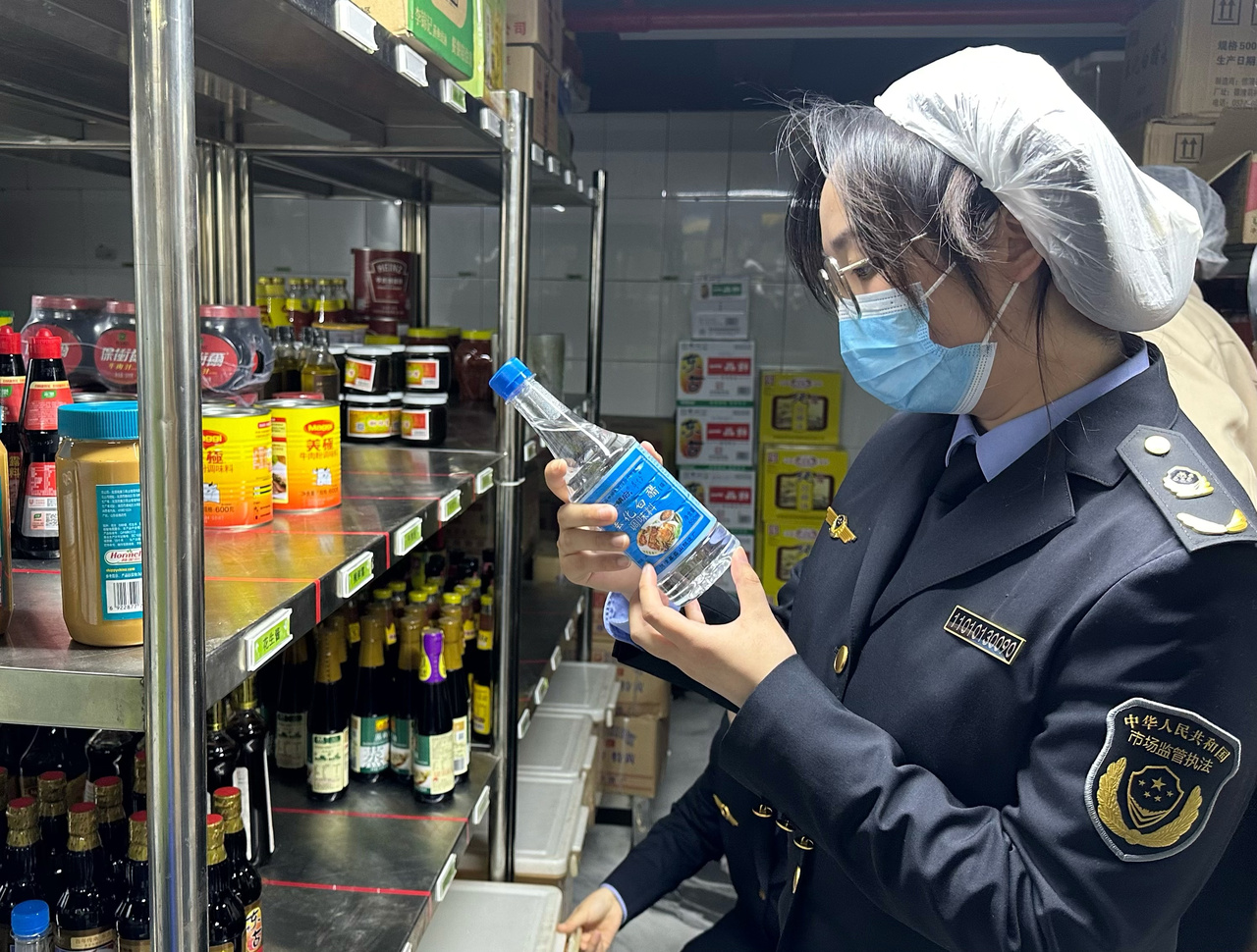 “这些调味料要严格按照标签指示,定点存放,不能图方便随手混放。”一位执法人员指着货架说。在另一角,几个员工的水杯被指出不应放在食材货架上,执法人员指出:“个人物品必须有独立存放区,这是基本规范,能避免交叉污染。”