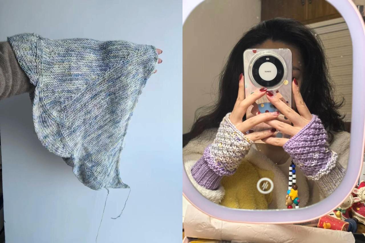 “接力”织的披肩和获赠的手套 图片源自受访者