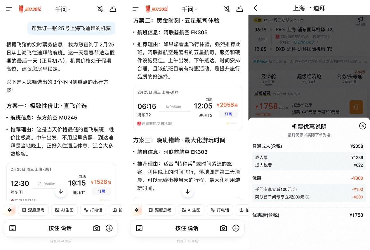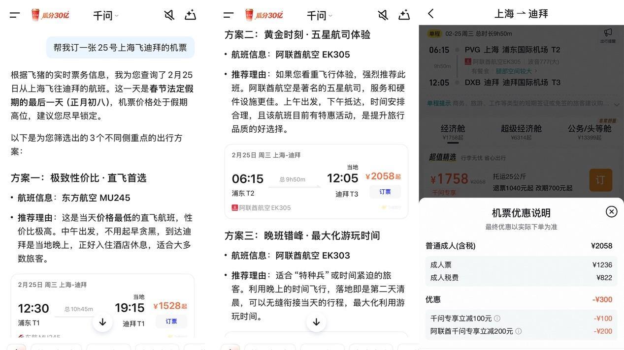 AI订票更优惠,40多个旅行大牌推出“千问价”