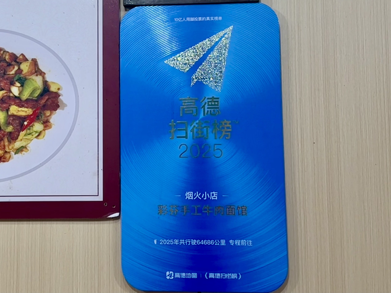 一年里,这家面店要接待成千上万位从外地自驾赶来的食客,其中不少来自南京、上海、杭州。老板骄傲地指了指墙上挂的一张“2025年高德扫街榜”榜单,上面写着:64686公里,专程前往。他解释道:“这说明去年不少食客特意把面馆设为导航终点,专门驱车前来打卡,里程加起来足足有六万多公里。”