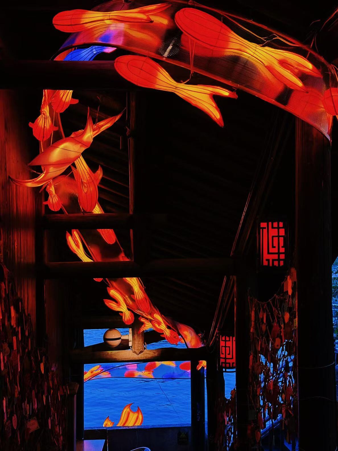 浙江在线2月15日讯(记者 毕真)近日,杭州拱宸桥在一片流光溢彩中惊艳亮相。以“大鱼海棠”为主题的灯光装置将整座古桥装点得如梦似幻,光影交织间,仿佛为老街区铺陈开一幅灵动的光影画卷。桥下流水潺潺,桥上灯影摇曳,古桥与新春灯饰相映成趣,成为市民游客争相打卡的热门地标。