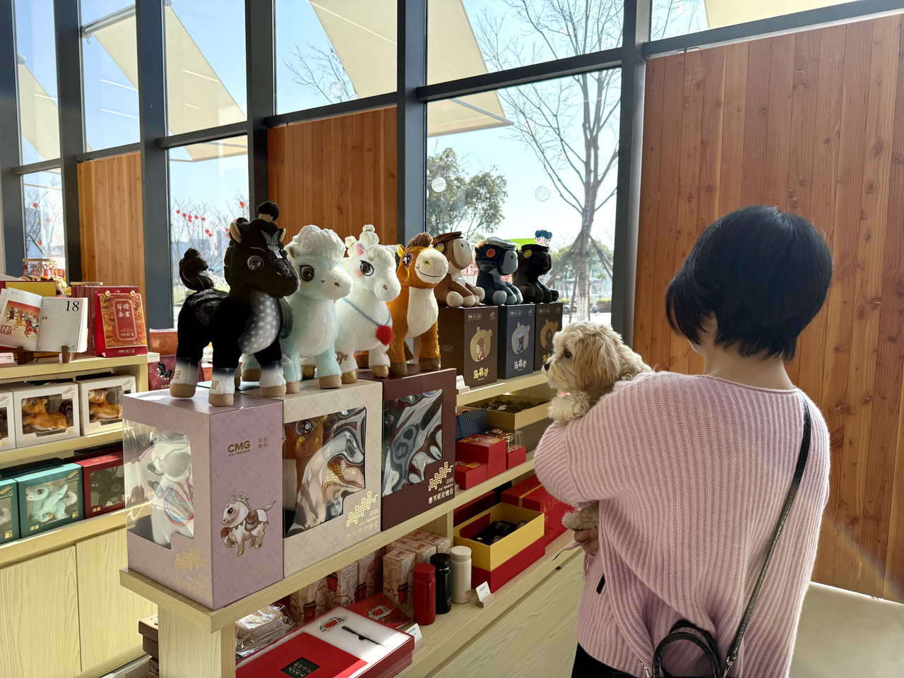 最热闹的当数文创专区。春晚的热度还在持续,作为央视文创浙江首店,春联、盲盒系列、咖啡杯等多款文创产品在这里同步亮相,2026年春晚吉祥物毛绒玩偶“骐骐”“骥骥”“驰驰”“骋骋”四匹骏马整齐列队,卖得正俏。