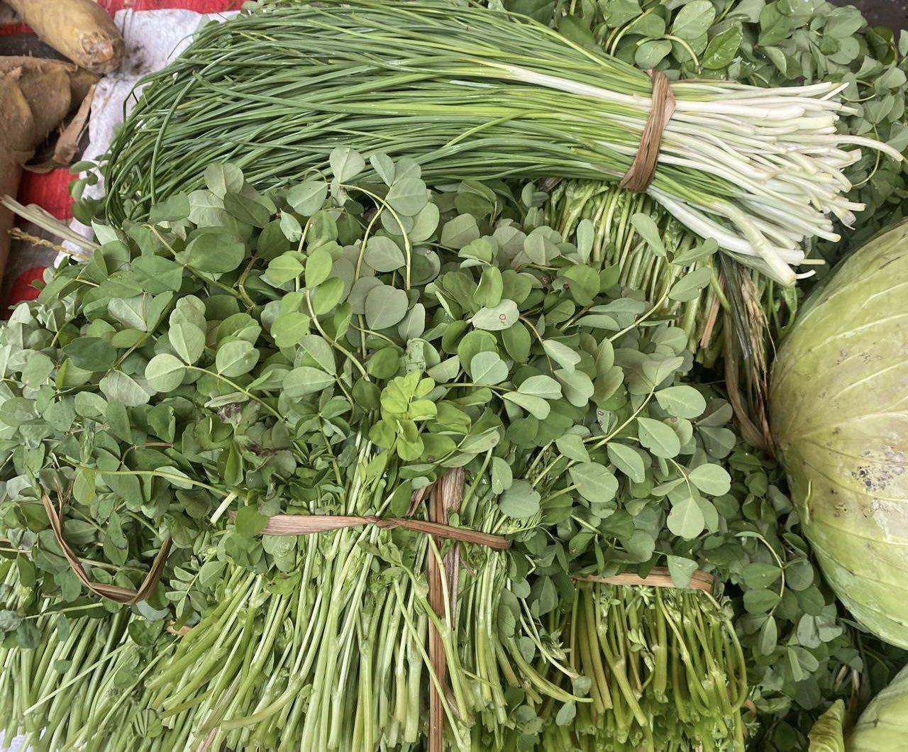 圩场一角,一位小朋友在吃当地的特色米粉 江小来 摄