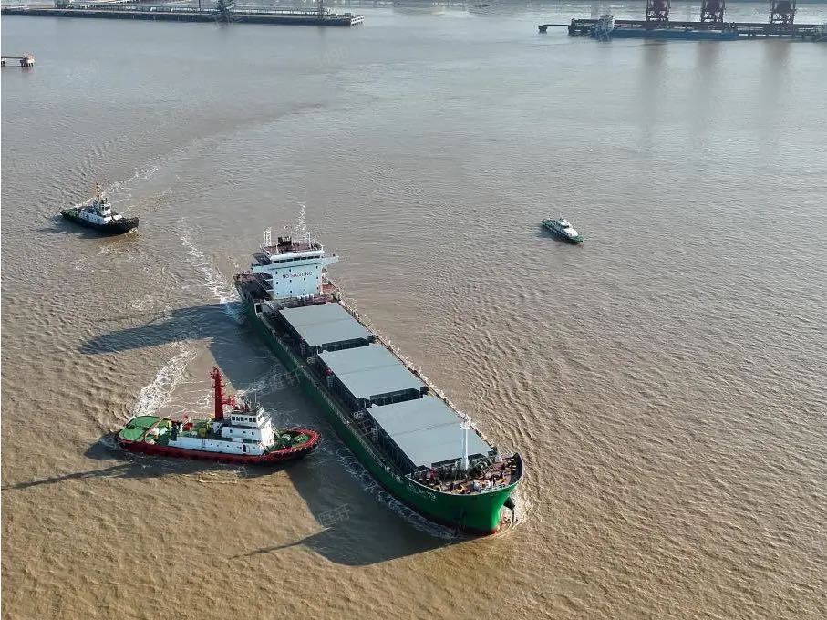 2月20日下午3点,浙江宁波北仑矿石码头汽笛长鸣,国内首艘甲醇单一燃料动力江海直达船舶“创新19”轮正缓缓离开码头,装载着11000吨铁矿石驶向江阴,正式开启首航之旅。