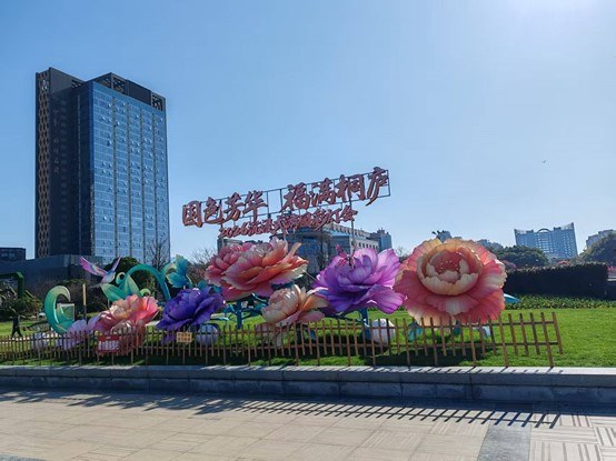 “国色芳华”2026沉浸式游园彩灯会在桐庐中心广场启幕。图为主题灯彩。陈白云摄。