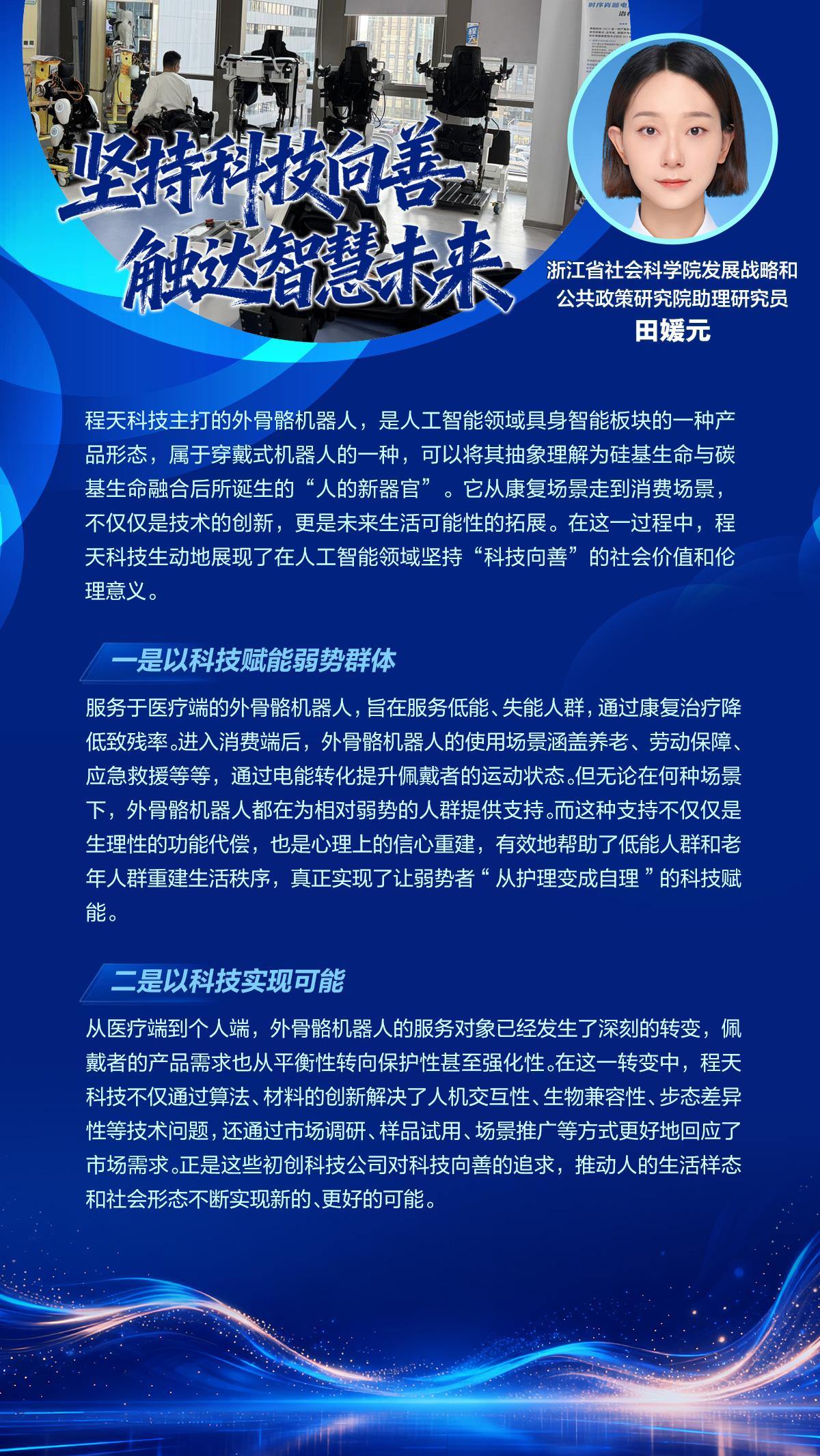 杭州程天科技智能康复中心里,73岁的李爷爷盯着髋上那副流线型的“机械骨骼”,深吸一口气,尝试迈出第一步、第二步……此刻,机械关节发出一声轻柔的“咔嗒”。这声音,连接着一个生命轨迹重启的瞬间,也呼应着一场正在浙江发生的科技浪潮。
