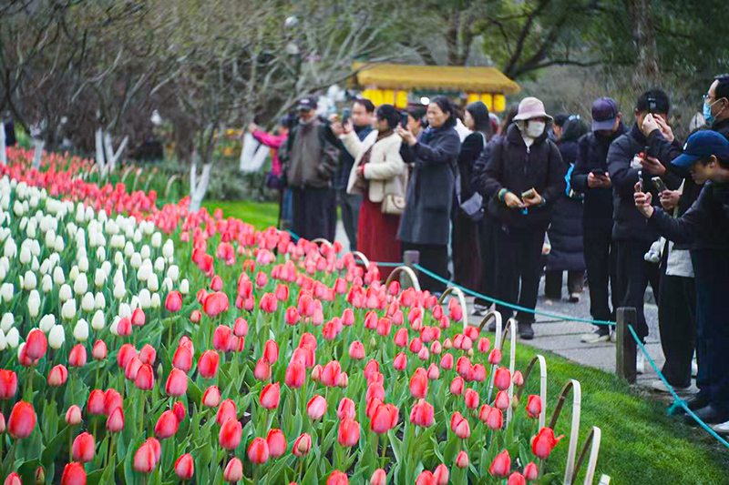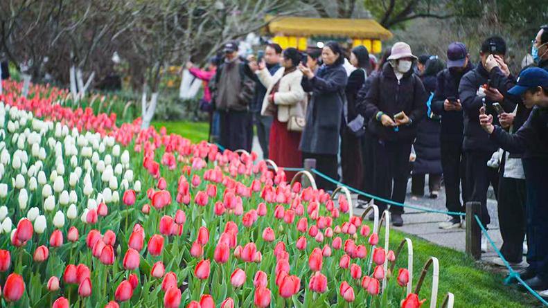 浙江在线3月6日讯(记者 陈天怀)春风拂岸,繁花初绽。3月6日,2026太子湾郁金香花展正式拉开帷幕,展期将持续至4月12日。40万株郁金香、洋水仙等花卉竞相开放,以“爱如繁花”为主题,为杭城市民与游客献上一场为期一月有余的春日赏花盛宴,尽显西湖生态之美与人文韵味。