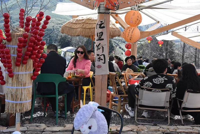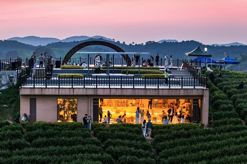 在溪龙乡青苔农场花园,憨态可掬的瓦莱黑鼻羊为万亩茶园增添了童话气息,这是90后企业家李彦漪为溪龙带来的“礼物”。她的团队引入知名IP,打造主题民宿与餐饮,并联动“一片叶子”茶饮空间、数字游民公社等项目,让静态的茶山成为排队打卡的网红地。