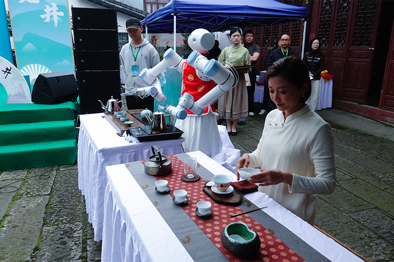 两者同台竞技,各展所长,让观众直观感受传统与科技的融合。“比拼的过程中,我还是发现它有很多优点,可以根据设定的程序保证动作在固定轨迹,出汤品质很稳定;但劣势是机动性方面不佳,也少了些人文和传统文化传承的韵味。”参与比拼的茶艺师徐丁一表示。