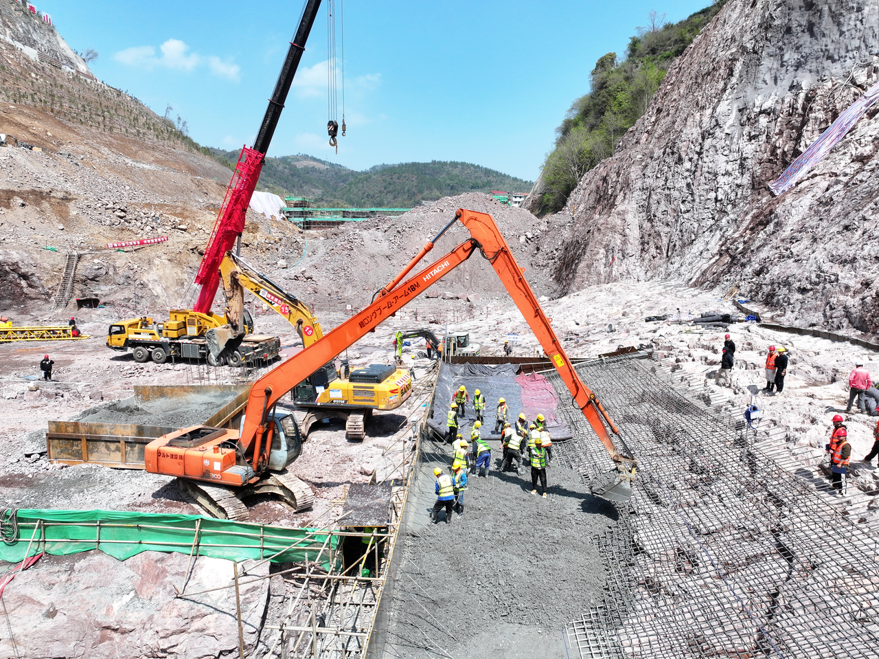 3月25日,浙江镜岭水库大坝主体首仓混凝土启动浇筑 张亮宗 摄