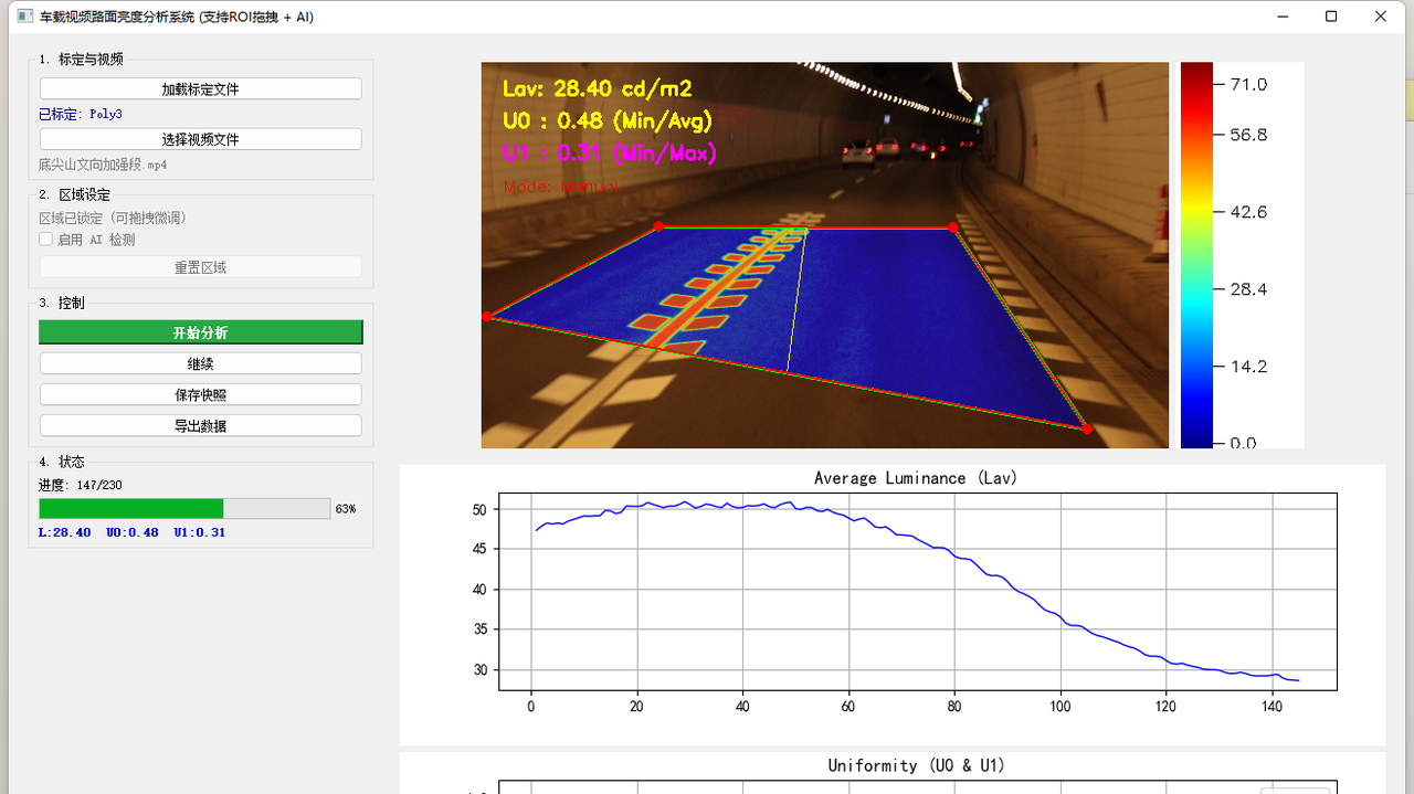目前,该装置已在温州管理中心所辖金丽温、诸永、文瑞、文泰等多条高速路段规模化应用,构建起“节能降耗-安全保障-效率提升-对标标准”的闭环管理体系。实际应用成效显著,兼具良好社会效益与经济效益:一方面,精准检测隧道照明参数,动态优化照明调控方案,有效消除"白洞""黑洞"视觉风险,全方位守护司乘出行安全;另一方面,依托智能联动调光实现精准节能,大幅压降隧道照明能耗与日常运维成本,最大限度保障高速路网通行顺畅,重塑了隧道照明运维检测的全新作业模式。