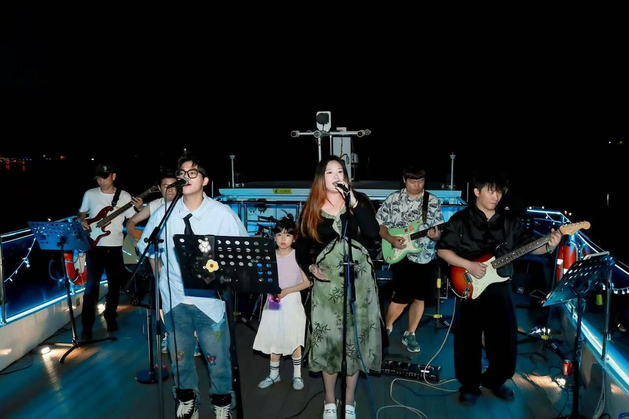 一江两岸游船上,乐队在演奏 上虞文旅供图