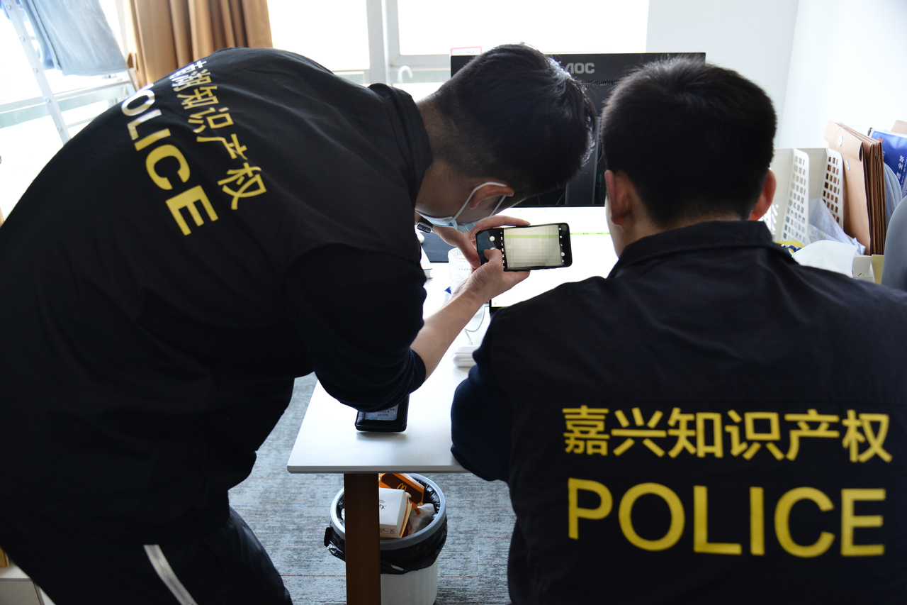 嘉兴知识产权专案组民警办案中 嘉兴公安供图