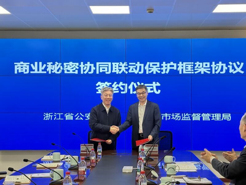 作为2026年全国知识产权宣传周活动内容之一,4月22日,浙江省商业秘密协同联动保护专场活动在省知识产权保护中心举行。浙江省公安厅、浙江省市场监督管理局正式签署《商业秘密协同联动保护框架协议》,并同步设立“商业秘密联合保护工作室”。