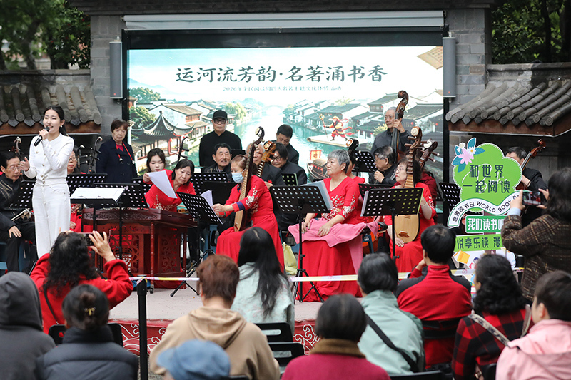 今天,杭州全民阅读周活动在古城墙陈列馆广场举行。现场乐队奏响四大名著经典影视曲目,同时设置点歌互动环节,市民可现场点歌、即兴演唱,在春风中感受文学与音乐交融的独特魅力。