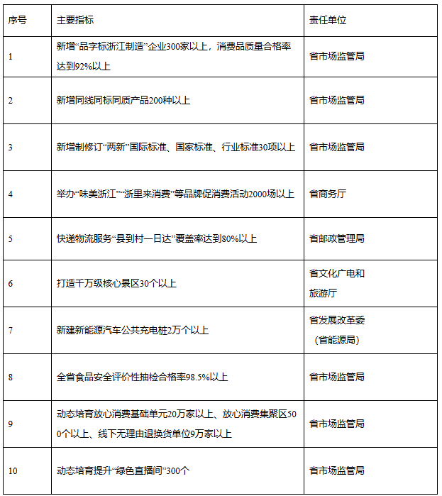 浙江省优化消费环境三年行动2025年主要指标