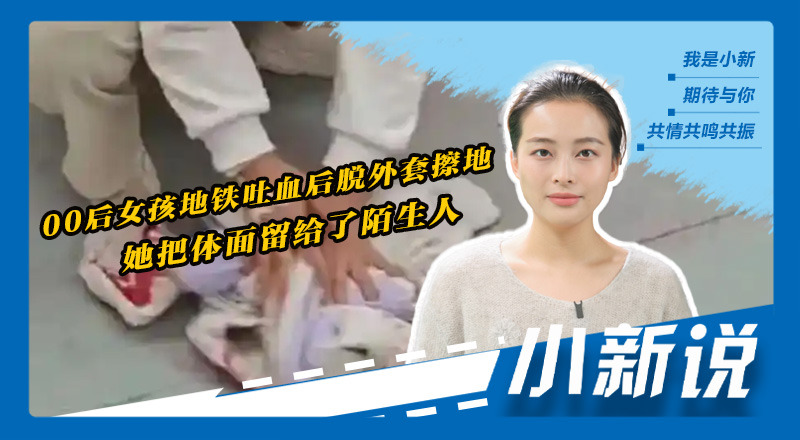00后女孩在地铁上吐血后,她立马脱下外套,将地上的血迹擦干净。