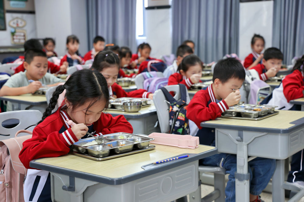 2023年,学校食堂终于建成了,取消了校外统一送餐,开始推出学生营养餐。“学校不仅每天公布营养菜谱,还承诺尽量做到不重样。”陈千遵作为家长代表,参与过学校组织的多方共检。一段时间下来,家长和学生们的满意度直线上升,“午餐难题”得到解决。