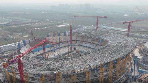杭州余杭国际体育中心项目总建筑面积约53万平方米,是浙江省“千项万亿”重大项目之一。该项目规划建设综合体育馆、游泳馆和足球场,其中足球场为轮辐式双层索膜结构形式专业足球场,南北跨度超300米,建成后可承办国际足球顶级赛事,同时也可兼顾演出、展览等多功能需求,将打造“国际赛事+全民运动+商业休闲”一站式国际体育中心。