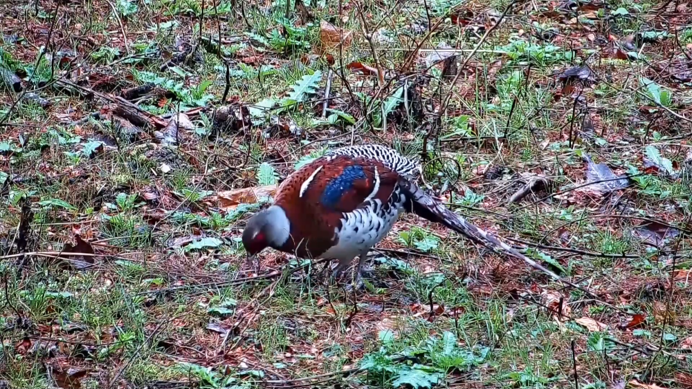 18日,杭州临安浙江清凉峰国家级自然保护区运用远程视频监控系统,在海拔900米左右的清凉峰珍稀植物园,首次近距离拍摄到国家一级重点保护野生动物——白颈长尾雉的珍贵影像。