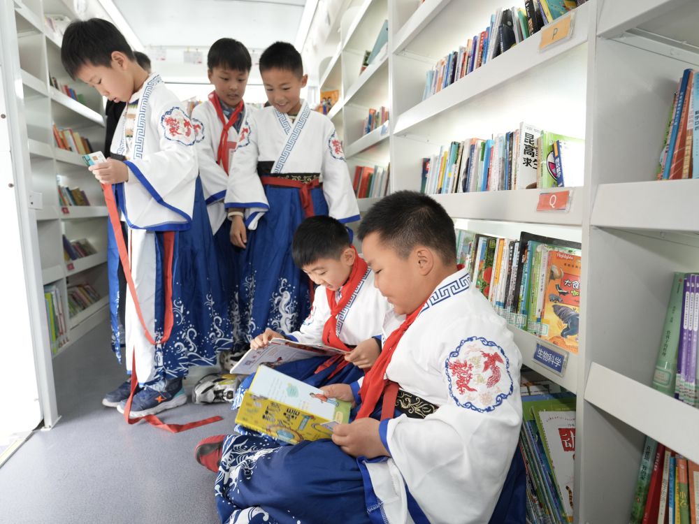 一辆“悦读快车”近日驶进杭州市桐庐县富春江小学的校园。除了带去数千册书籍,杭州图书馆与桐庐县文化和广电旅游体育局还为学生们组织了“茶韵东方”茶艺体验、“纸墨书香”桐庐特色非遗剪纸项目展示、“富春词韵”古筝诗词表演以及“阅见科学”科普实验体验,以及“十周年童心彩画展”、《国之脊梁》图片展等,让孩子们大饱眼福。记者从杭州图书馆获悉,今年是“悦读快车——孩子们的流动图书馆”项目实施10周年,服务小读者10万名。