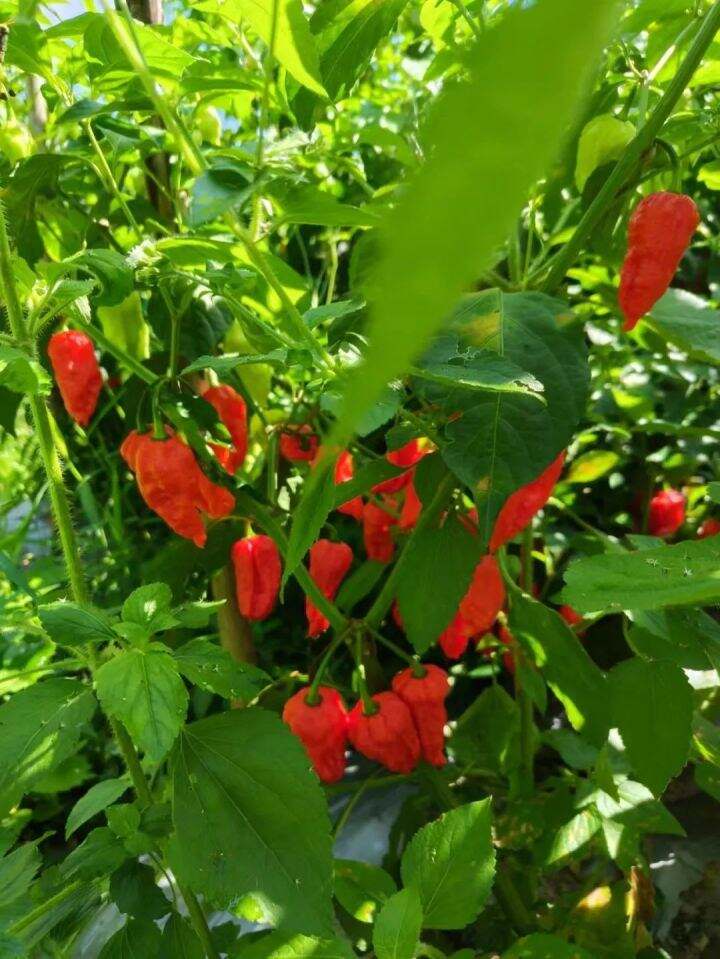 了解到古楼村的环境非常适合种植工业辣椒,今年4月份,沈必环和沈必忠流转了40多亩土地,开始试种。工业辣椒病虫害少,长势十分旺盛,短短几个月时间,一垄垄红彤彤、明艳艳的辣椒挂满枝头。