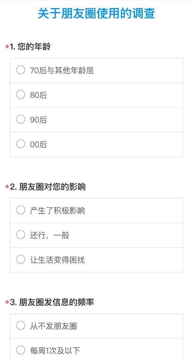 关于朋友圈使用的问卷调查