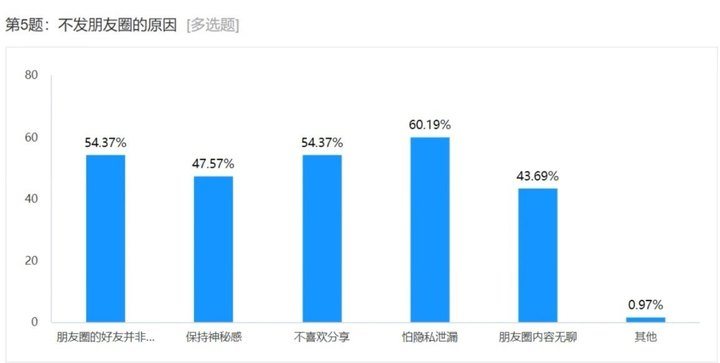 这代表着,现在的微信更像是一本通讯录,其中许多人并不是基于亲密关系来建立的,甚至很多是陌生人。因此,朋友圈也不再具有“隐私性”。