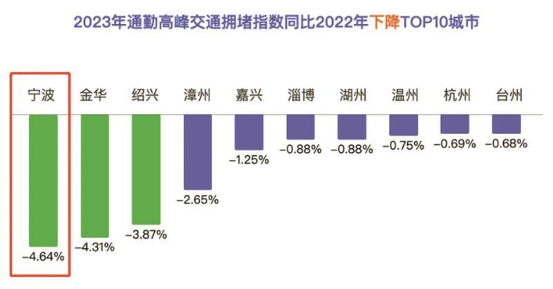 而宁波,不仅是全国百城中成功“降堵”的14座城市之一,还是领跑全国的降堵“冠军”。2023年,宁波通勤高峰交通拥堵指数同比下降4.64%,降幅居全国百城之首。