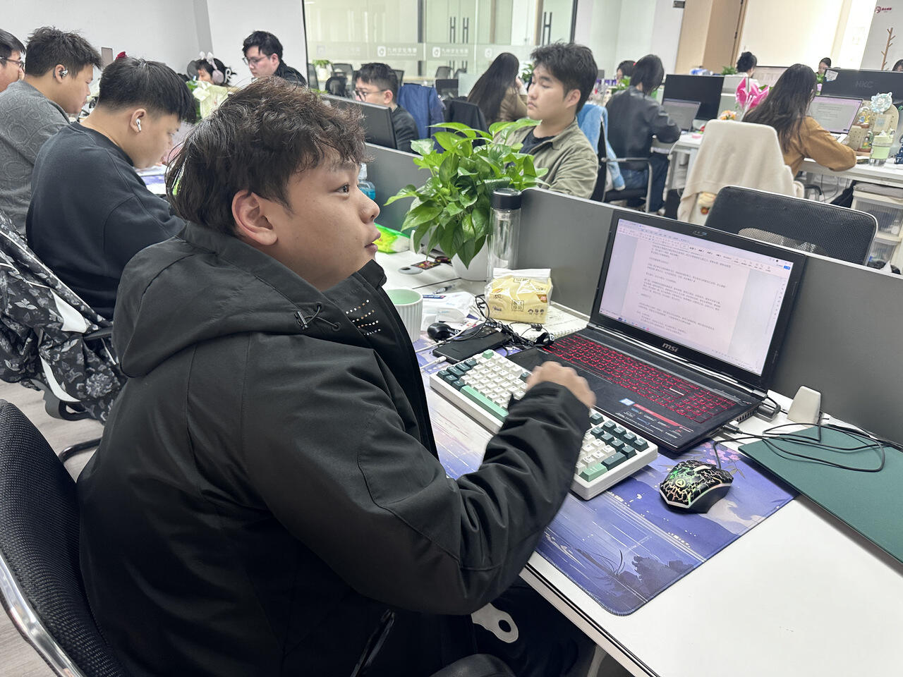走进嘉兴九州文化传媒有限公司的短剧剧本撰写办公区,记者看到近百名年轻人正在工位上认真“码”字。