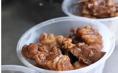 老张还将红烧羊肉打包进塑料打包盒,方便大家下班买回家加热吃。