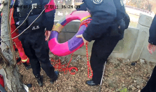 曹海萍将救生绳系在男子腰部,于俊在水下托举男子与岸上的队员顺利把男子救上岸。二人跳河救人仅用时3分钟。