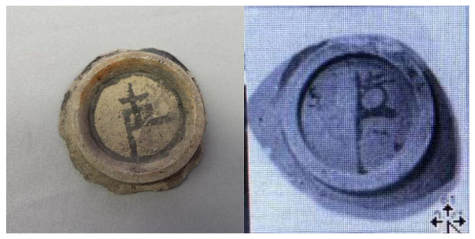左图为温州出土的墨书陶瓷,右图为日本出土的墨书陶瓷(翻拍)。尤豆豆 摄