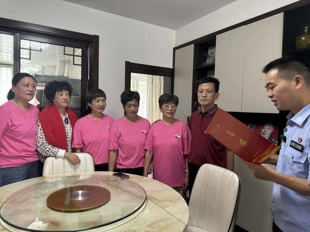 “这是你二姐、三姐、四姐、六妹妹……”“我们赵家兄弟姐妹今天终于团圆啦!亲爱的五妹妹回来啦!”大哥赵伟福向妹妹介绍至亲们。“像的,像的…”“是亲人,像的,回家了妹妹!…”他们在家门口和民警一起拍了一张全家福,并送上锦旗。