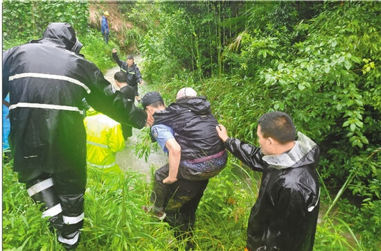 开化苏庄派出所民警、村干部等救援九旬遇险老人。通讯员 姜程勇 摄