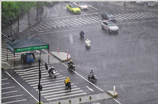 6月15日下午,金华出现强降水,给市民出行带来不利影响。记者 潘秋亚 通讯员 时补法 摄