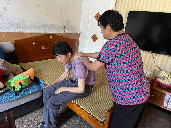 书上说按摩能缓解僵硬,她就认真学。怕按不准穴位、力道不对,她先在自己身上试,反复练习。慢慢地,她摸索出了一套适合丈夫的按摩手法。