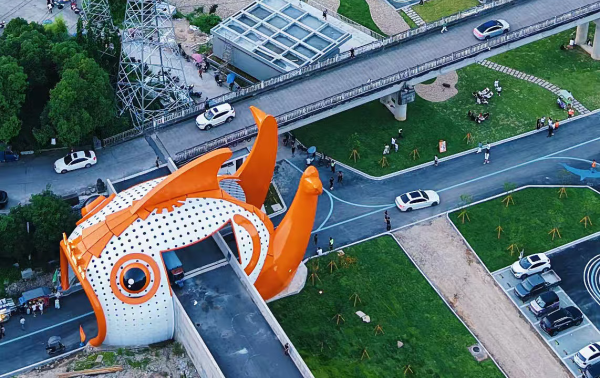 开车前往永嘉县高浦社区,远远望见一个鱼头建筑,从“鱼嘴”穿过,便可到达目的地。
