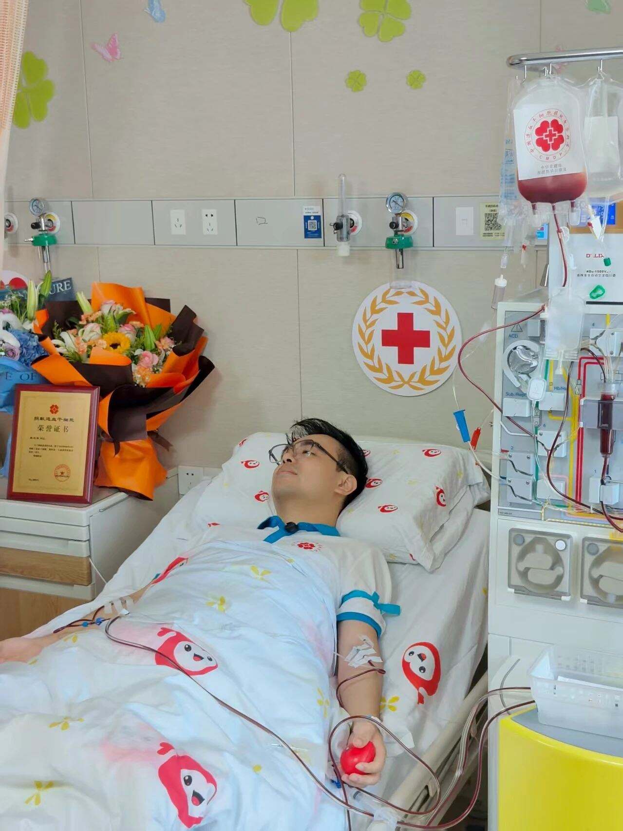 2025年8月19日是第八个中国医师节,节日前夕,浙江大学医学院附属第一医院肿瘤内科的蔡承智医生以一场特殊的行动为自己的节日献礼。8月15日上午,浙江省人民医院造血干细胞采集病房里,蔡承智经过4个半小时的采集,成功捐献209毫升造血干细胞混悬液,成为浙江省第1249例、杭州市第391例、上城区第63例造血干细胞捐献者。