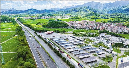 图为G25长深高速(杭千高速)杭州桐庐服务区(南区)光储充一体化智慧充电站。 通讯员 汤晨 摄