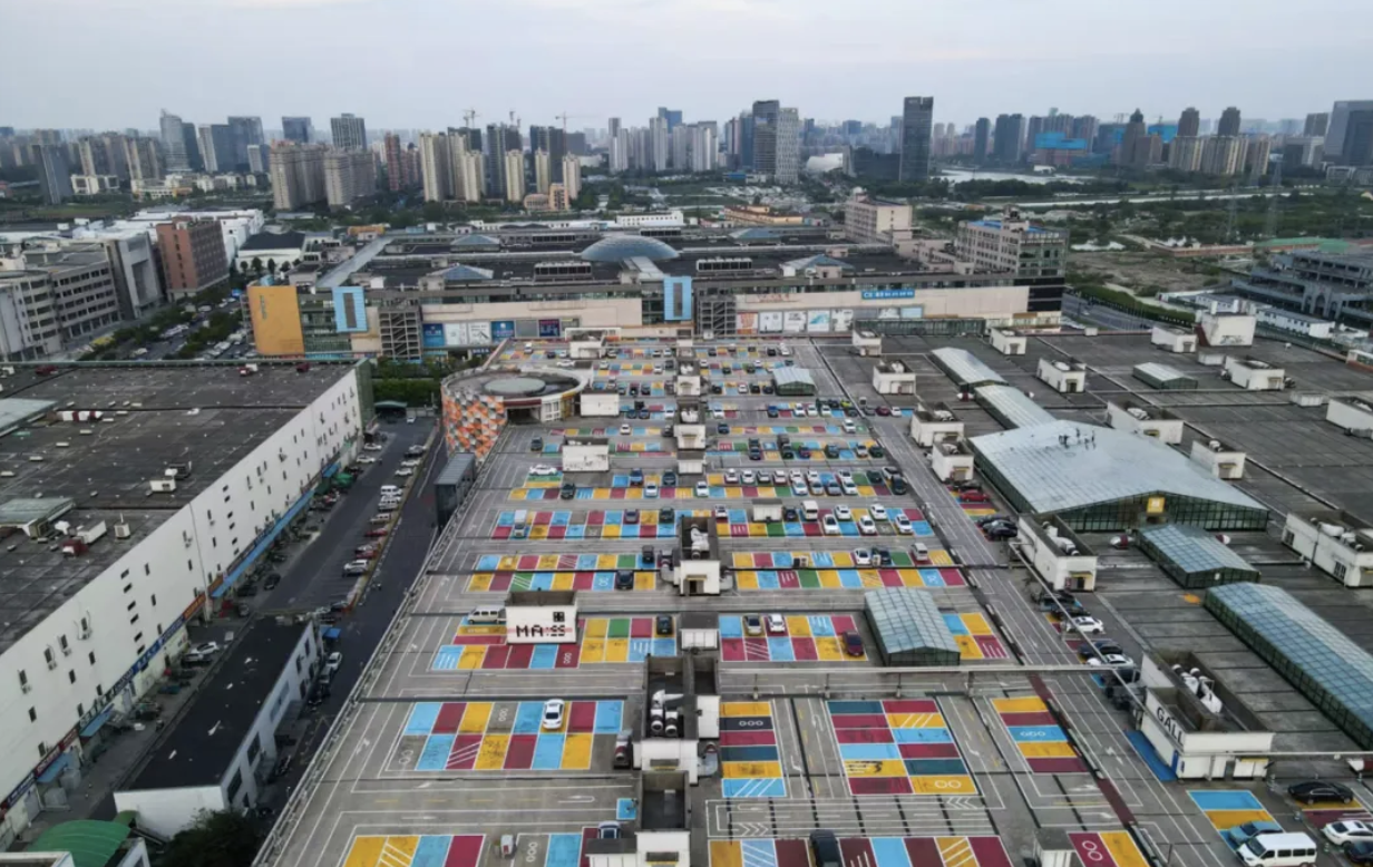 在杭州,人们已经开始把车停到屋顶上。瑞纺联合市场利用屋顶空间开辟了容量超千辆的天台停车场。其中500多个车位涂装了红、蓝、黄三色的彩绘,组成了“彩虹天台”。