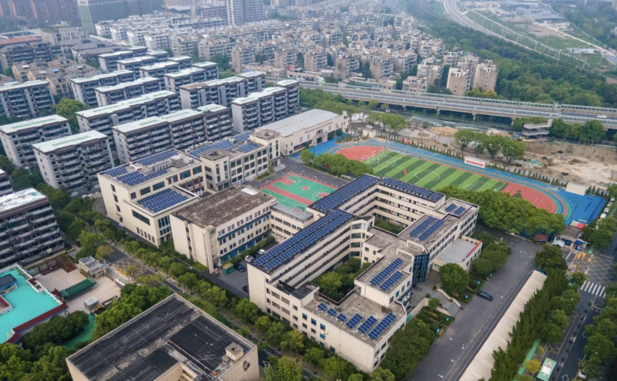 杭州临平第三中学教学楼楼顶建有约600平方米的光伏板,主要用于学校自发自用电。通讯员 邵丰年 项凯 摄