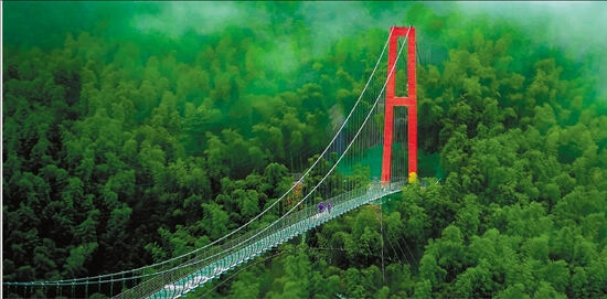 浙江安吉竹海栈道。安吉正以竹林碳汇改革为支点,撬动共同富裕与低碳发展的双赢格局。 视觉中国供图